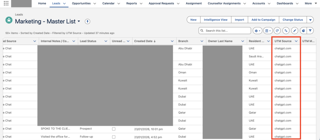 I track every lead source using UTM parameters inside our Salesforce CRM. This includes paid media, organic traffic, and referral sources.